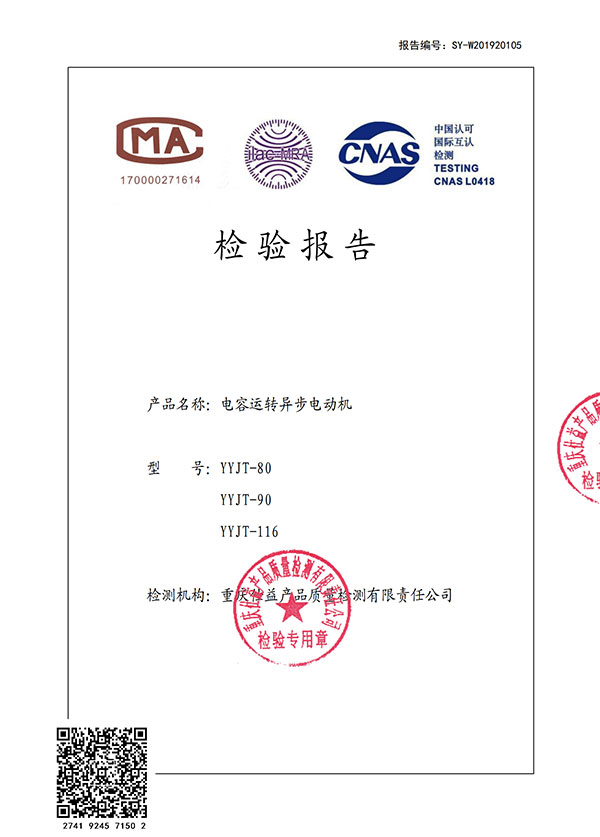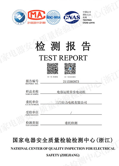 電容運(yùn)轉(zhuǎn)異步電動機(jī)檢測報告