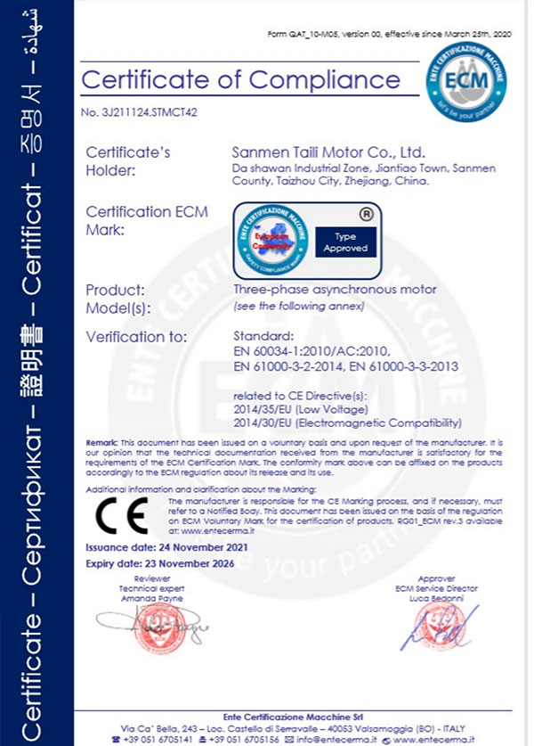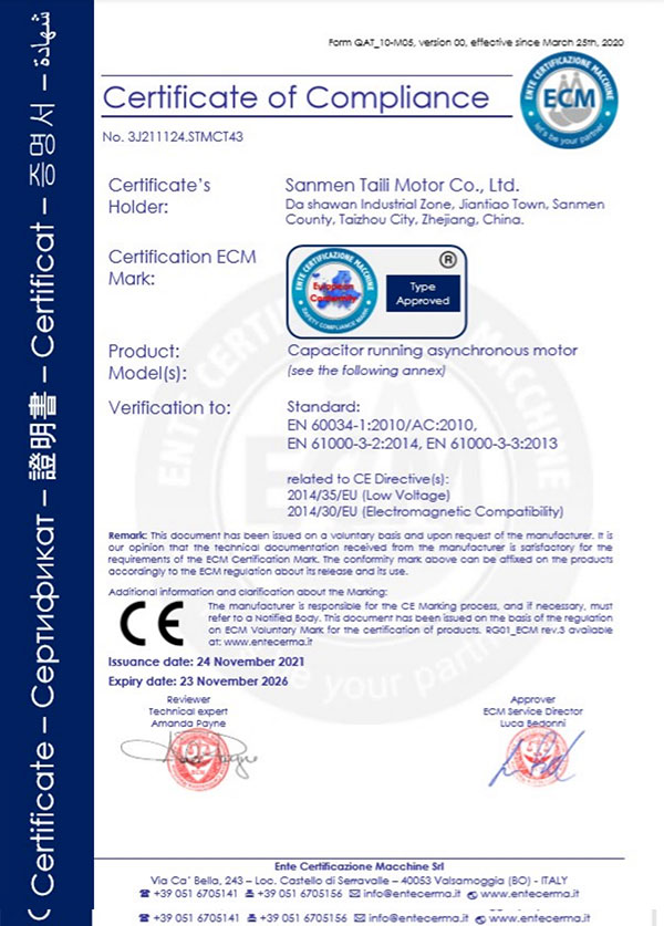 電容運(yùn)轉(zhuǎn)異步電動機(jī)CE認(rèn)證