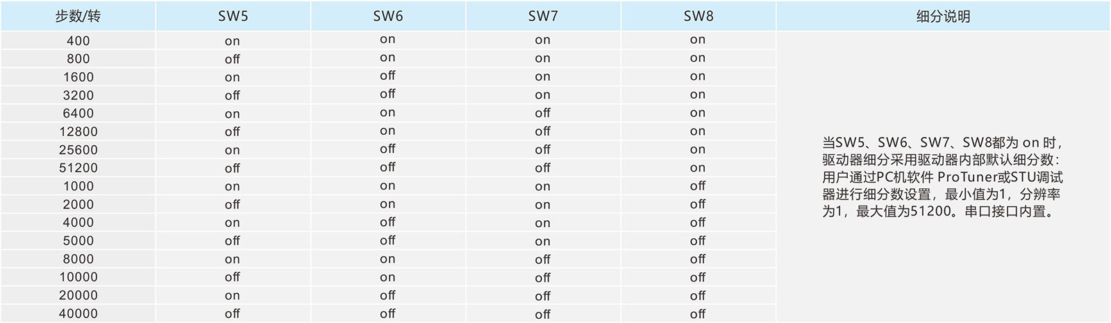 1、概述86型是公司新推出的數(shù)字式步進(jìn)電機(jī)驅(qū)動器,采用最新32位DSP數(shù)字處理技術(shù),驅(qū)動器控制算法采用先進(jìn)的變電流技術(shù)和先進(jìn)的變頻技術(shù),驅(qū)動器發(fā)熱小,電機(jī)振動小,運(yùn)行平穩(wěn)。用戶可以設(shè)置200~51200內(nèi)的任意細(xì)分以及額定電流內(nèi)的任意電流值,能夠滿足大多數(shù)場合的應(yīng)用需要。由于采用內(nèi)置微細(xì)分技術(shù),即使在低細(xì)分的條件下,也能夠達(dá)到高細(xì)分的效果,低中高速運(yùn)行都很平穩(wěn),噪音超小。驅(qū)動器內(nèi)部集成了參數(shù)上電自動整定功能,能夠針對不同電機(jī)自動生成最優(yōu)運(yùn)行參數(shù),最大限度發(fā)揮電機(jī)的性能。