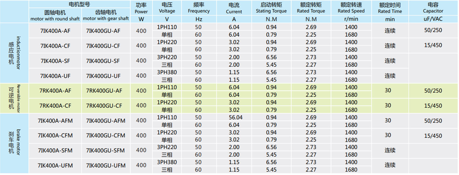 ▲ 注意:使用電壓和機(jī)型不同,電容容量不一樣,訂貨時請務(wù)必指明具體的型號。