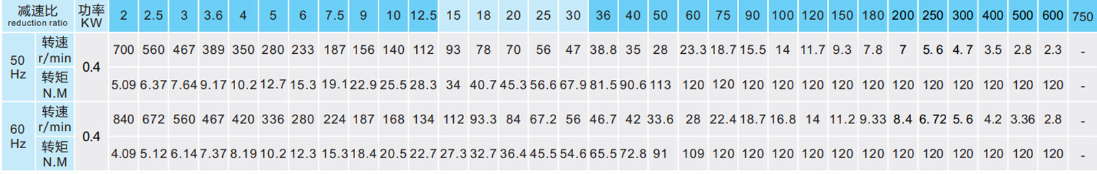 轉(zhuǎn)速是以電動機(jī)的異步轉(zhuǎn)速(50Hz:1400r/min、60Hz:1680r/min)為基準(zhǔn)除以減速比而算 出來的數(shù)值。實(shí)際轉(zhuǎn)速將隨負(fù)載大小變化而有所變化。