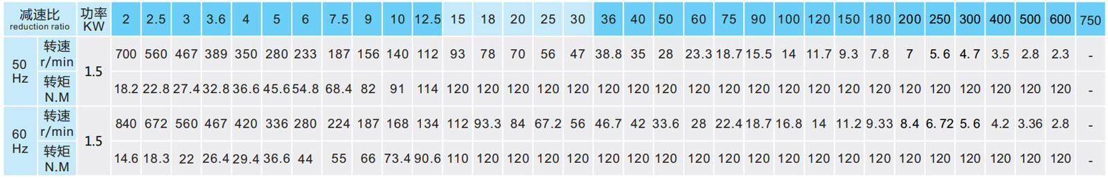 轉速是以電動機的異步轉速(50Hz:1400r/min、60Hz:1680r/min)為基準除以減速比而算 出來的數值。實際轉速將隨負載大小變化而有所變化。