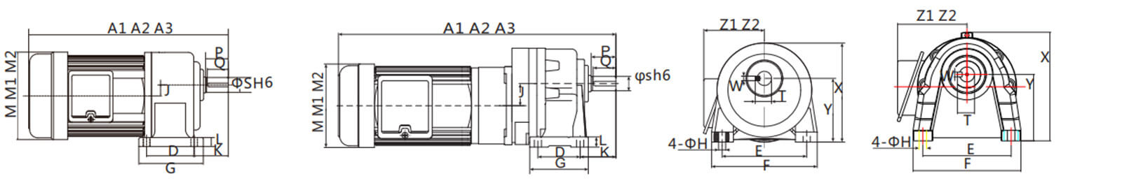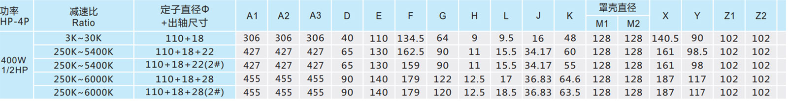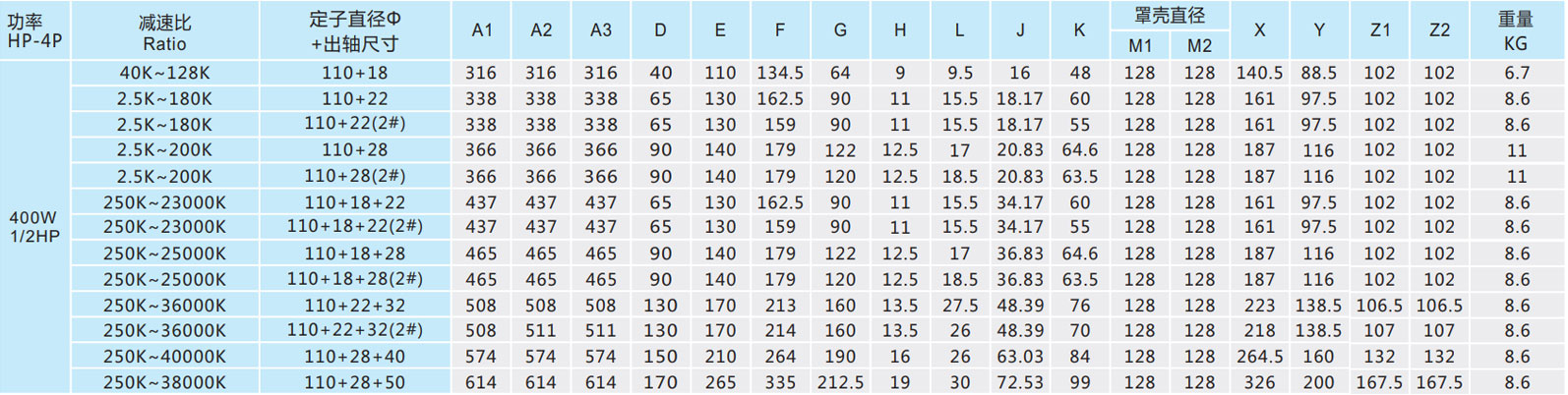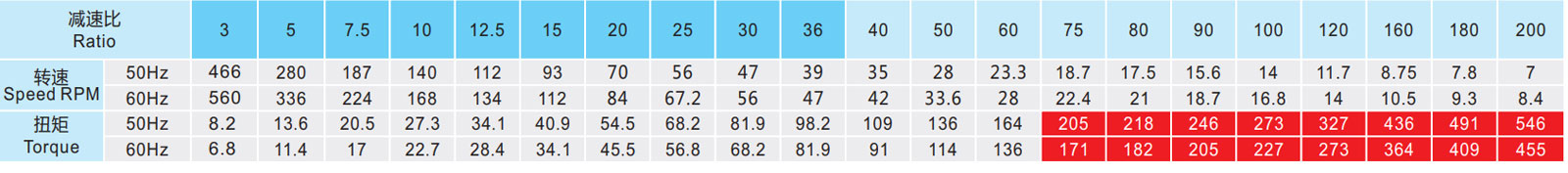 ▲ 表列轉(zhuǎn)速是基于電機異步轉(zhuǎn)速(50Hz:1400r/min、60Hz:1680r/min),額定負載時,實際轉(zhuǎn)速為表列轉(zhuǎn)速的80%-98%。
