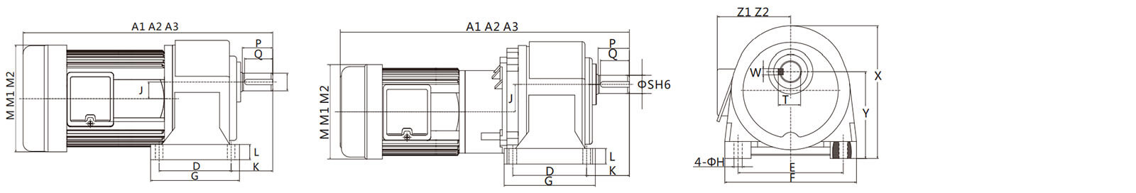 A2、M2、Z2為單相馬達(dá)尺寸。