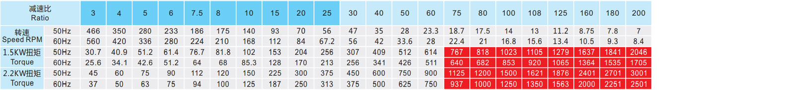 ▲ 表列轉(zhuǎn)速是基于電機(jī)異步轉(zhuǎn)速(50Hz:1400r/min、60Hz:1680r/min),額定負(fù)載時(shí),實(shí)際轉(zhuǎn)速為表列轉(zhuǎn)速的80%-98%。