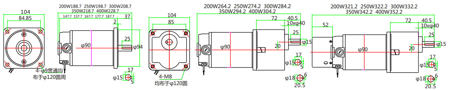 電機(jī)電壓、功率及轉(zhuǎn)速可在配件尺寸等條件允許下根據(jù)客戶要求定制。