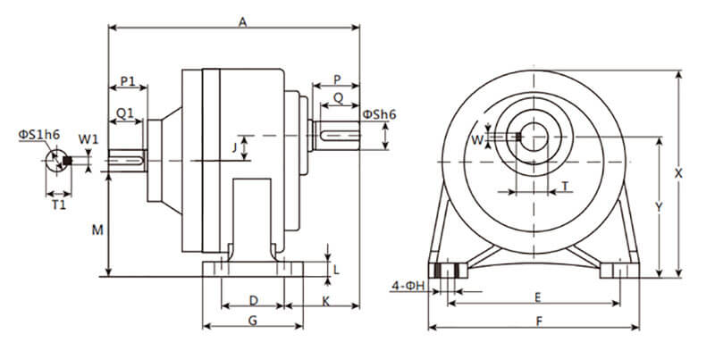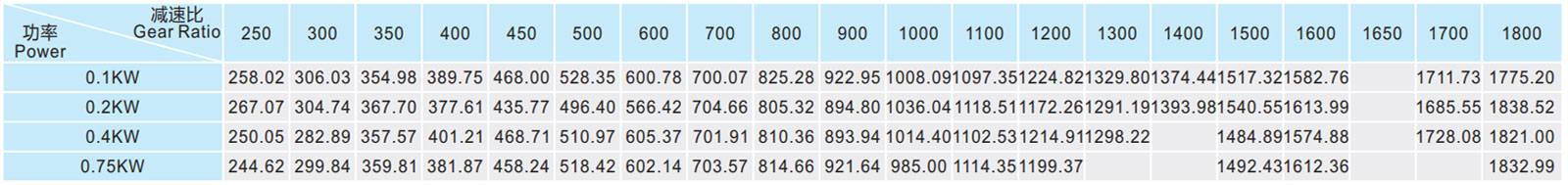 ▲ 表列轉(zhuǎn)速是基于電機異步轉(zhuǎn)速(50Hz:1400r/min、60Hz:1680r/min),額定負載時,實際轉(zhuǎn)速為表列轉(zhuǎn)速的80%-98%。