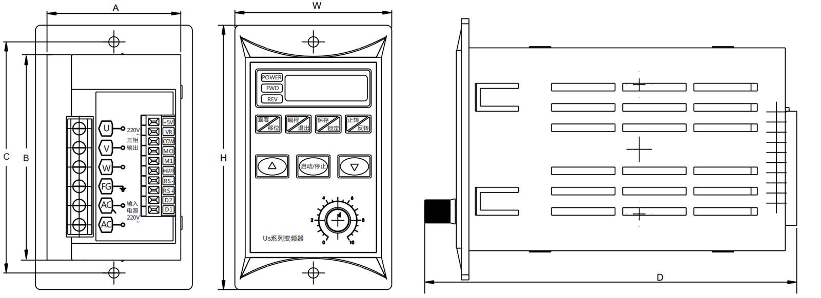 US系列變頻器體積小,安裝方便;調(diào)試簡(jiǎn)單,參數(shù)簡(jiǎn)潔易懂,能夠滿足 普通場(chǎng)合的要求,是專門針對(duì)220V/0.75KW以下的三相交流電機(jī)量身定做的,位設(shè)備制造業(yè)廣大客戶提供一體化解決方案 ,對(duì)降低系統(tǒng)成本,及提高系統(tǒng)可靠性具有很高價(jià)值。