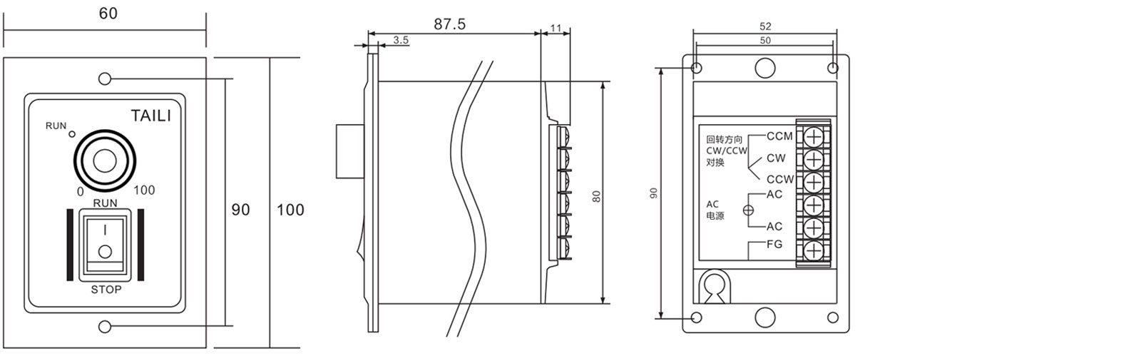該系列1HP直流馬達調(diào)速器采用PWM脈寬調(diào)制技術(shù)/可控硅來控制輸出電壓大小及穩(wěn)定度。由于調(diào)制頻率高,故能在輸出電壓很低的情況下,亦能使直流電機實現(xiàn)低噪聲、平滑的運行。本機還具有完備的保護功能;如過流,短路,電壓(外部輸入電壓低于160VAC )保護。延時啟動時間可調(diào),緩降時間可調(diào),電流補償并可以實現(xiàn)正反轉(zhuǎn)和聯(lián)動控制等功能。